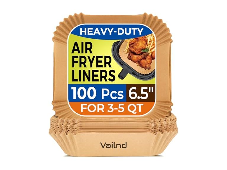 - Liners Size: Vailnd air fryer paper liners are in 6.5 inches at bottom diameter, suitable for both round and square baskets between 3 and 5 qt. Heat resistant temperatures up to 428 Fahrenheit