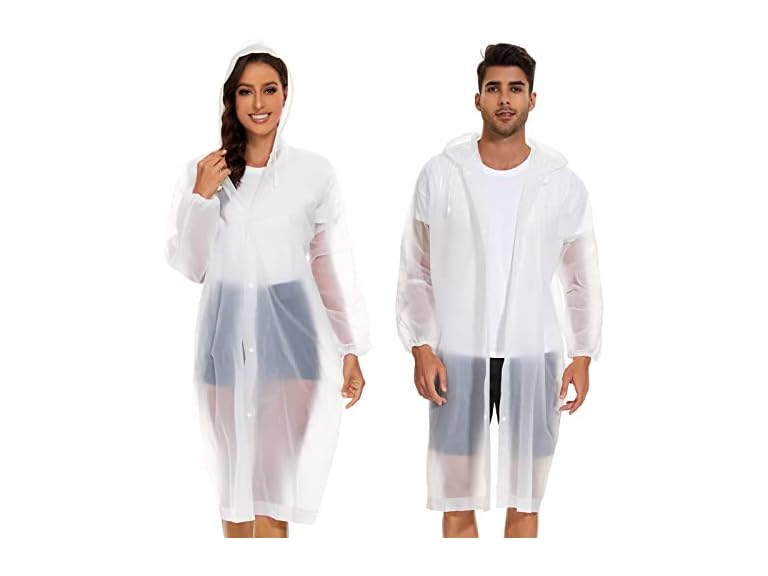 - (1) Feifango Rain Ponchos for Adults Reusable, 2 Pack EVA Lightweight Raincoats Waterproof Rain Jackets with Drawstring Hood for Women Men