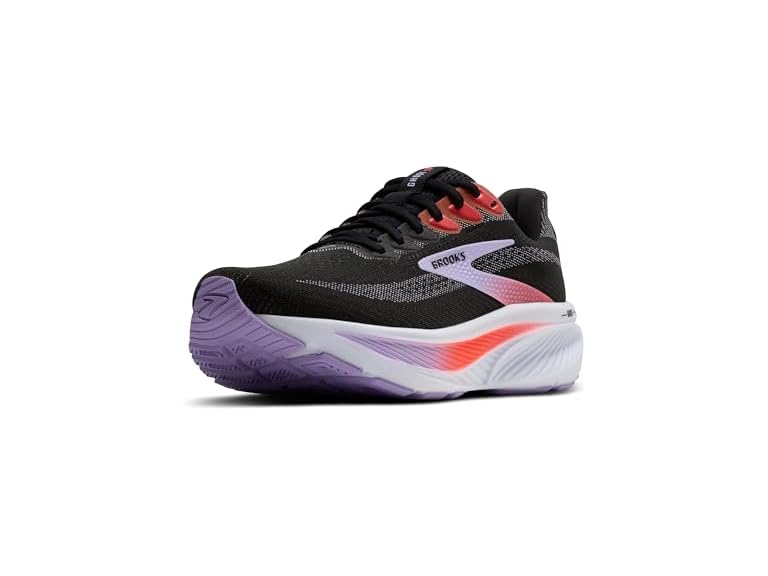 - (1) Brooks Womens Ghost 17 Neutral Running Shoe - Black/Purple/Coral - 9 Medium