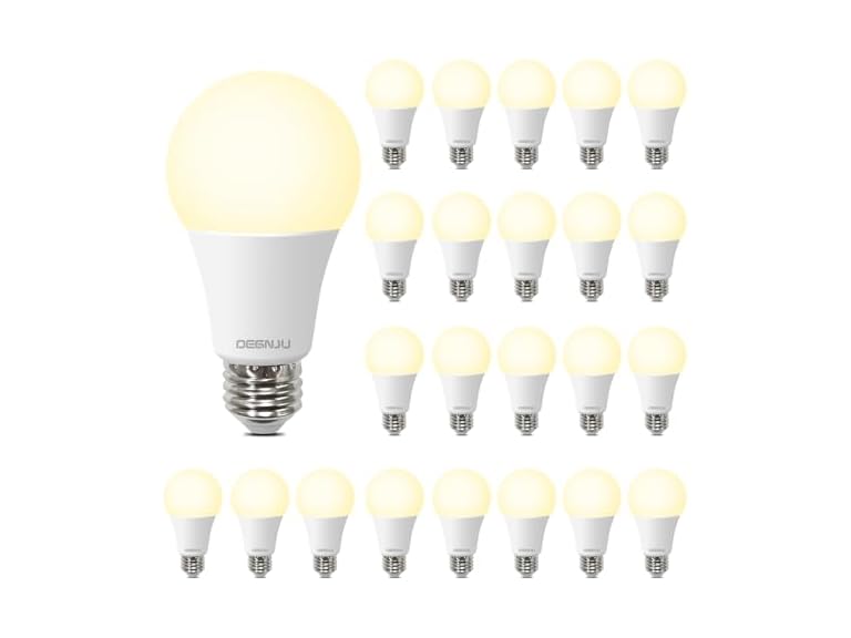 - DEGNJU A19 LED Light Bulbs, 100 Watt Equivalent LED Bulbs, Soft White 2700K, 1500 Lumens, E26 Standard Base, Non-Dimmable, 13W Bright White LED Bulb for Bedroom Living Room Home Office, 24 Pack