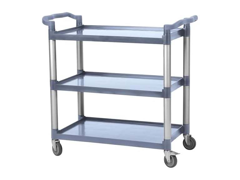 - (1) Utility Service Cart 3 Shelf, Plastic Heavy Duty 3-Tier Utility Bus Cart with Wheels Food Service Cart, Rolling Utility/Push Cart for Foodservice/Commercial/Restaurant/Office/Warehouse/Kitchen/Hotel