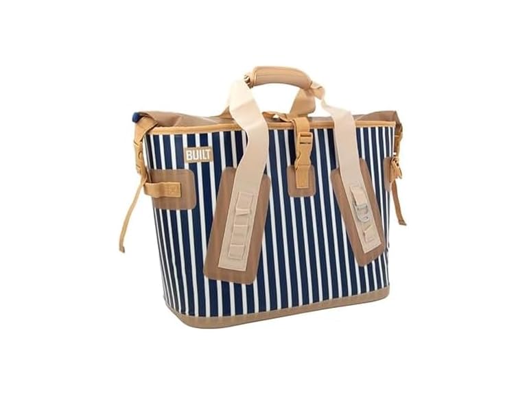 - (1)BUILT Large Welded Soft Portable Cooler Bag with Wide Mouth Opening, Insulated and Leak Proof Design, Durable and Lightweight for Outdoor Use, Atlantic Stripe Pattern