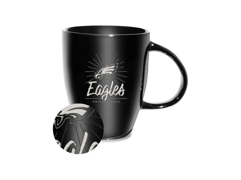 - (1) Rico Industries NFL Football Philadelphia Eagles Sunburst Black 18oz Laser Engraved Ceramic Lustre Mug