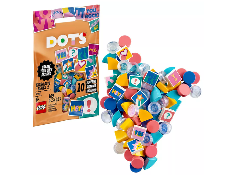 - The colorful (41916) Extra DOTS - Series 2 tiles are great for creating new designs with the different DOTS toys or with other LEGO sets for fun and easy arts and crafts for kids