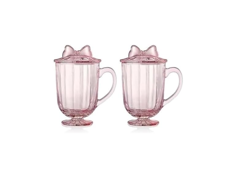 - Darbie Angell Bliss Set of 2 Footed Drinking Glasses with Lid, Elegant Drinkware Bow Design Optic Glass, 13.25 Ounce, Blush Pink Glass