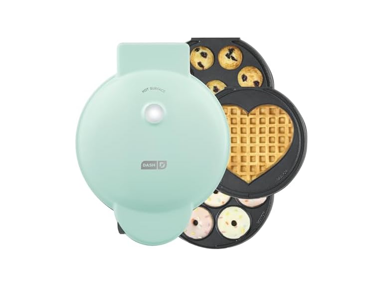 - (1) DASH MultiMaker Treat Maker System, Mini Donuts, Heart Shaped Waffle, Mini Cupcakes - Aqua