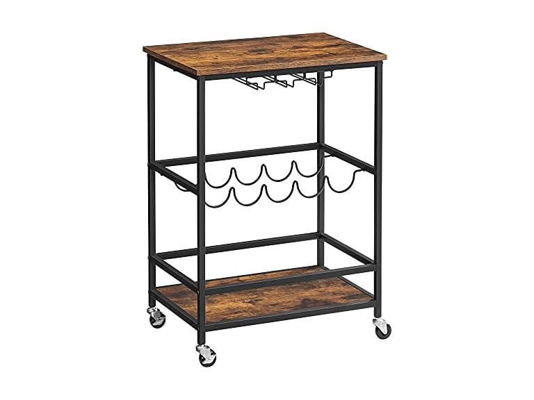 - (1) VASAGLE Bar Cart, Serving Cart with Wheels, Glass Stemware Rack and Wine Bottle Holders, 15.7 x 23.6 x 32.3 Inches, Industrial, Rustic Brown and Black ULRC087B01