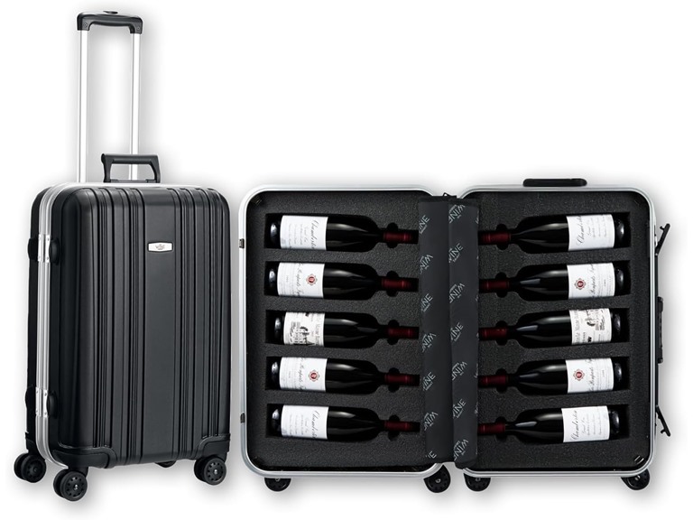 - The Wine Savant Wine Bottle Suitcase Aluminum | Holds 10 Standard 750 ML Bottles
