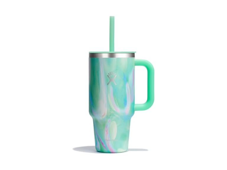 - 32 OZ JELLY GREEN TUMBLER: The insulated Hydro Flask 32 oz Travel Tumbler cup with easy flow straw is here to hydrate more and refill less. The insulation keeps drinks cold and the durable handle takes it to the next level. This stainless steel tumbler can go anywhere, fitting most cupholders.