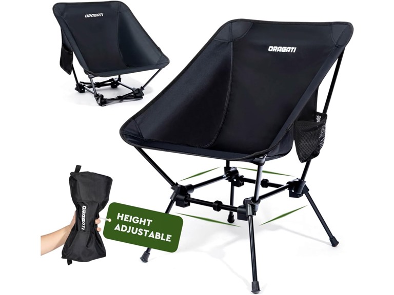 - Elevate your outdoor experience with our folding camping chair featuring two adjustable heights. Whether you're enjoying a serene sunset or cheering at a lively sports event, switch between high or low seat profile effortlessly. Perfect for adults, kids, and even your furry friends!