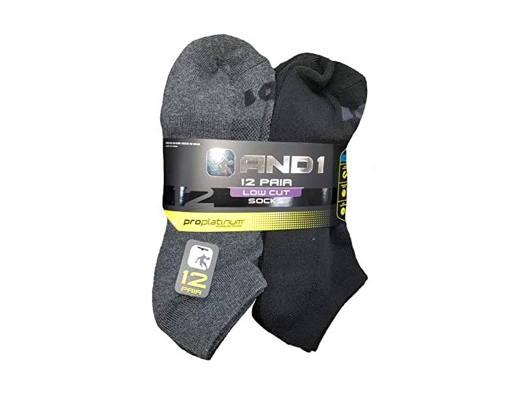 - (1) AND1 Black & Gray 12 Pair ProPlatinum Low Cut Socks
