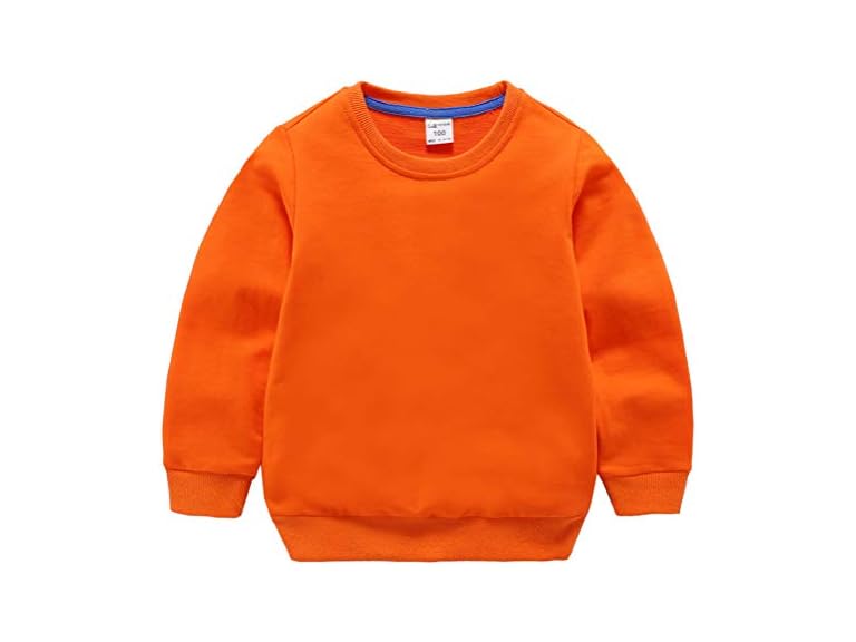- (1) DCUTERQ Boys' Crewneck Thin Sweatshirt Girls Sport Long Sleeve Cotton Pullover Tops Kids Toddler Solid T-Shirt Orange 2T
