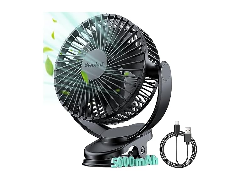 - Clip on Fan【5000mAh】This battery powered fan can work continuously For 18h-11h-6h (Low-Mid-High). This allows you to enjoy long-lasting coolness during outdoor activities, camping, office or home use