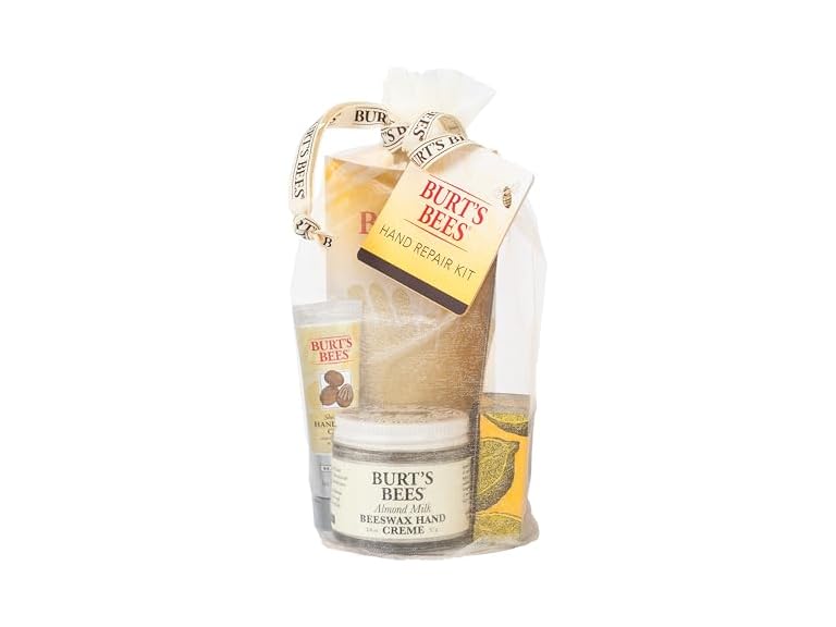 - BURTS BEES GIFT SET: This gift set includes 3 moisturizing hand products and one pair of cotton gloves in a giftable organza pouch perfect for stocking stuffers during the holidays or for the beauty enthusiast