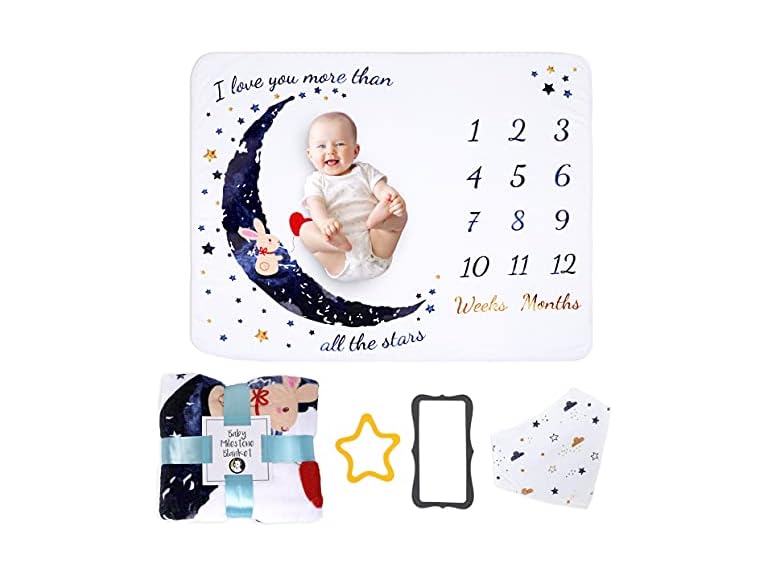 - Everything You Need: Our set comes with a lovely 50 x 40-inch baby monthly milestone blanket as well as 2 felt frames and a cute baby bib as a bonus, all carefully wrapped in a personalized packaging, so you can make a lasting impression with an adorable present.