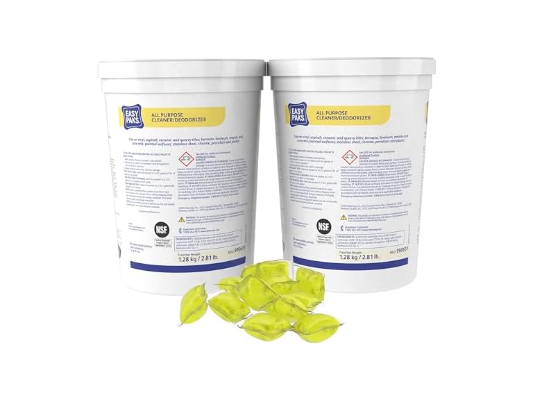 - Diversey 990651 Easy Paks All Purpose Cleaner & Deodorizer, Water Soluble Paks make Effervescent Solution with Lemon Scent, Yellow, 90-Paks, 1 Tub (Pack of 2)