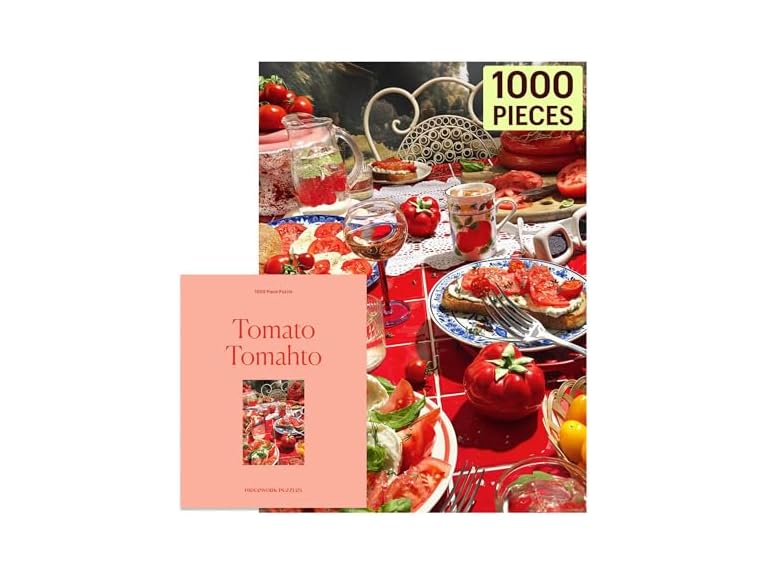 - TOMATO TOMATHO 1000 PIECE PUZZLE: Bursting with vivid hues and rustic charm, our sun-drenched scene of tomato tomahtos evokes an Italian Summer feel. Measuring at 19.25 x 26.6 inches, this 1000 piece puzzle for adults will make you crave more. Suitable for framing after completion or showcasing in your collection of other piece work puzzles.
