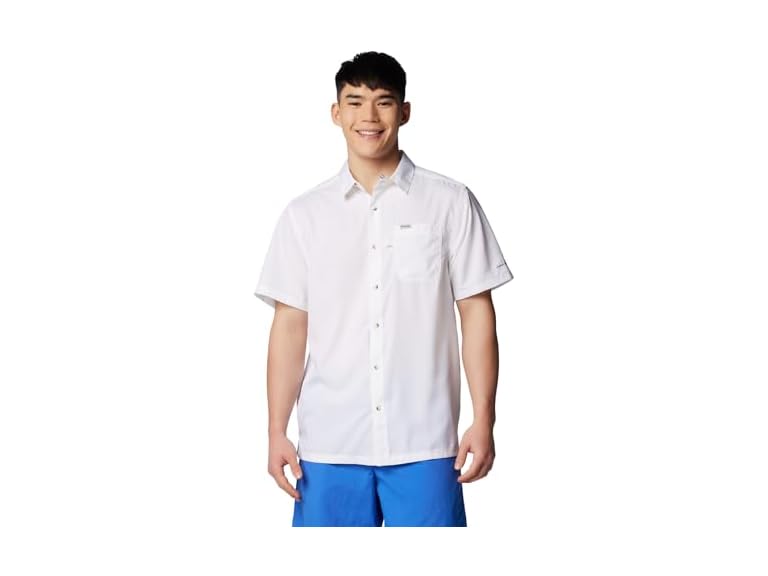 - (1) Columbia Mens Slack Tide Short Sleeve Camp Shirt, White, X-Large