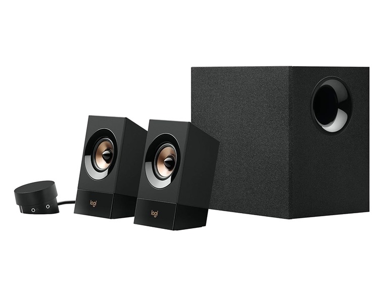 Powerful sound that moves you. With 120 watts of peak power, the Logitech Z533 multimedia speaker system unleashes powerful acoustics with rich lows and detailed highs for robust, room-filling sound. Take your music, movies and games to the next level with rich, dynamic bass thanks to the front-facing subwoofer with 2.25” (5.7 cm) full-range drivers. Easily command your sound using the wired control pod, which allows access to essential speaker controls such as power, volume and bass, along with a headphone jack and extra 3.5 mm Input. Multiple connectivity inputs, including 3.5 mm and RCA, let you connect and listen to almost any device with an audio output, such as a computer, tablet, smartphone — or even a TV.