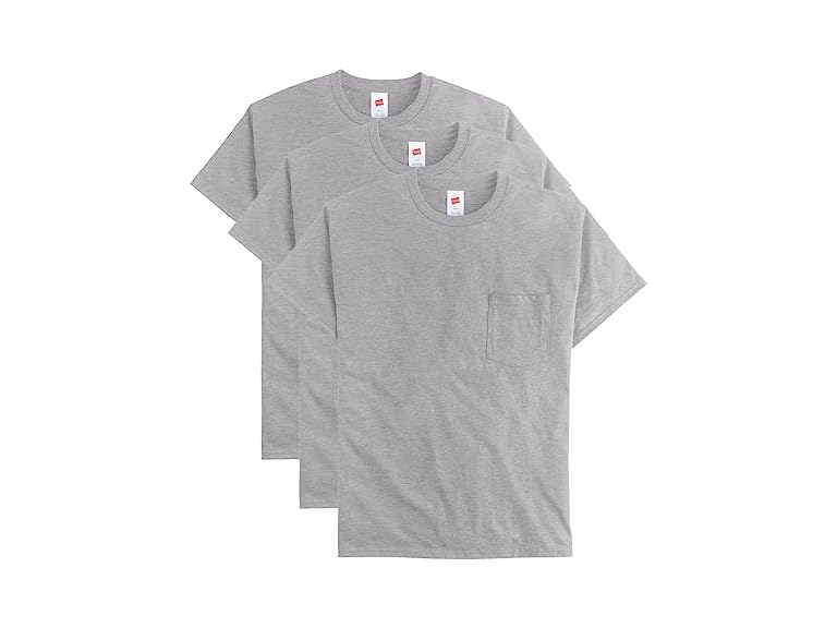 - (1) Hanes Men's Essentials Short-Sleeve Pocket T-Shirt Pack, Cotton Crewneck Tee, 3-Pack Oxford Gray