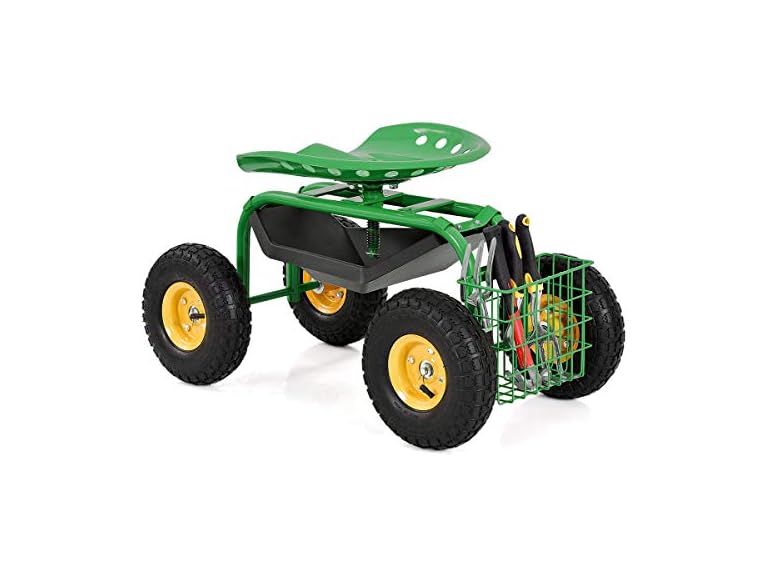 - IRONMAX Garden Cart with Seat, Heavy Duty Gardening Work Stools w/Height Adjustable Seat & 10’’ Large Wheels, Rolling Garden Scooter for Outdoor Lawn Yard Planting