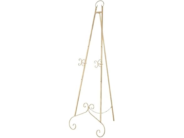 - The gold metal easel measures 26L x 30W x 67H inches, and weighs 2.8 lbs