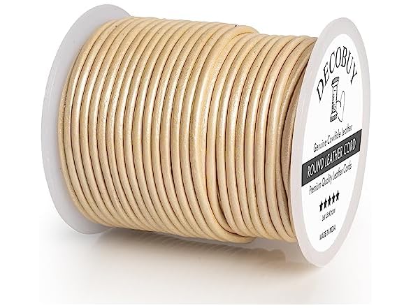 - (1) DecoBuy Leather Cord for Jewelry Making, Round Cording 2mm Rope, 27 Yards Used for Crafts, Necklace String, Braiding - Metallic Pearl