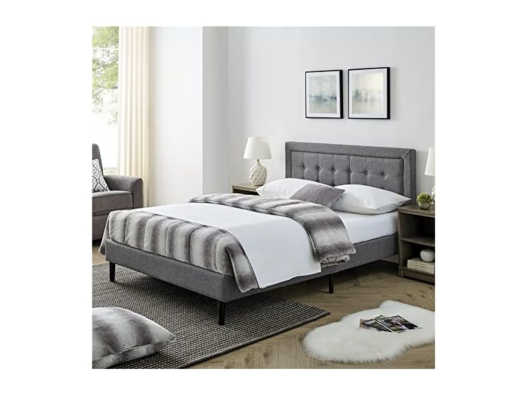 - (1) DeCoro Mornington 2.0 Upholstered Platform Bed | Headboard and Metal Frame with Wood Slat Support, Grey, King Size