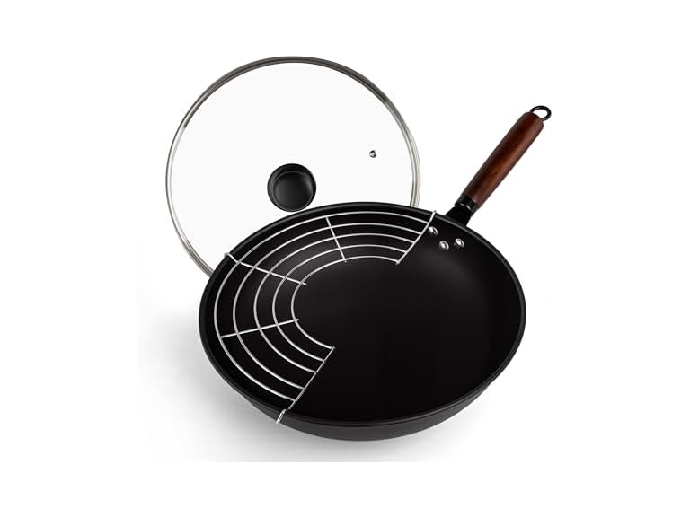 - Naturally Nonstick After Seasoning:Free of PTFE, PFOA, and chemical coatings. After seasoning, the wok forms a natural nonstick layer that improves with every use and will never peel or flake.
