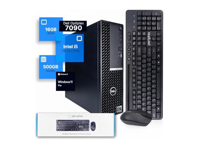 - [READY TO USE OUT OF THE BOX] - Comes with Wireless Periphio Keyboard and Mouse for professional-grade typing and navigation. Compact Small Form Factor (SFF) desktop computer design saves space while maintaining powerful performance