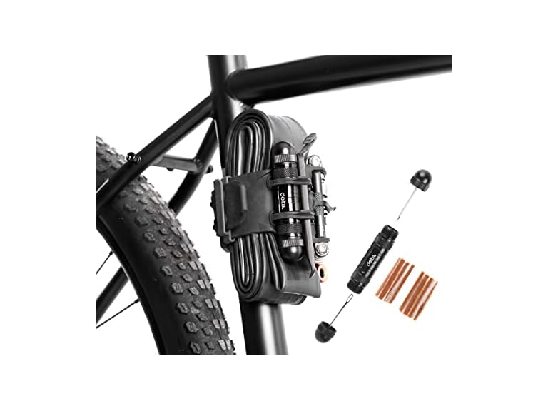 - (1) Delta Bike Frame Carrier Utility Strap With Tire Plugger Kit, Stwap by Delta Cycle - Oversized Strap Design Hold All Bike Tire Tube Sizes up to 29 inches with Integrated Hook & Loop Storage Fasteners