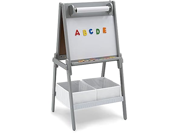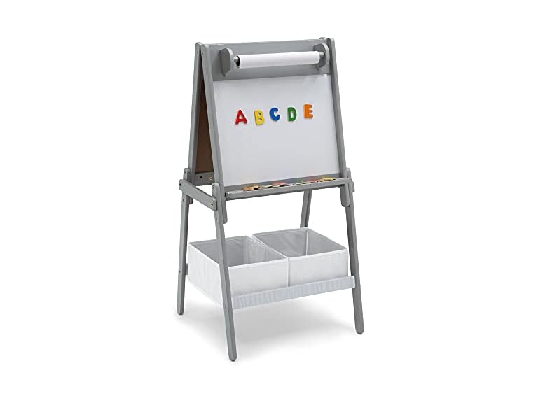 - (1) Delta Children Chelsea Double-Sided Storage Easel with Paper Roll and Magnets -Ideal for Arts & Crafts, Drawing, Homeschooling and More - Greenguard Gold Certified, Light Grey/White