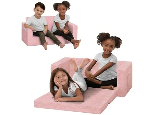 - Convertible Kids Couch & Sofa Sleeper: Convertible 2-in-1 kids sofa flips open to a toddler couch sleeper and floor lounger for reading, relaxing, playing, or naps. Extra wide design fits 2 children comfortably. Ideal kids couch for playroom or bedroom
