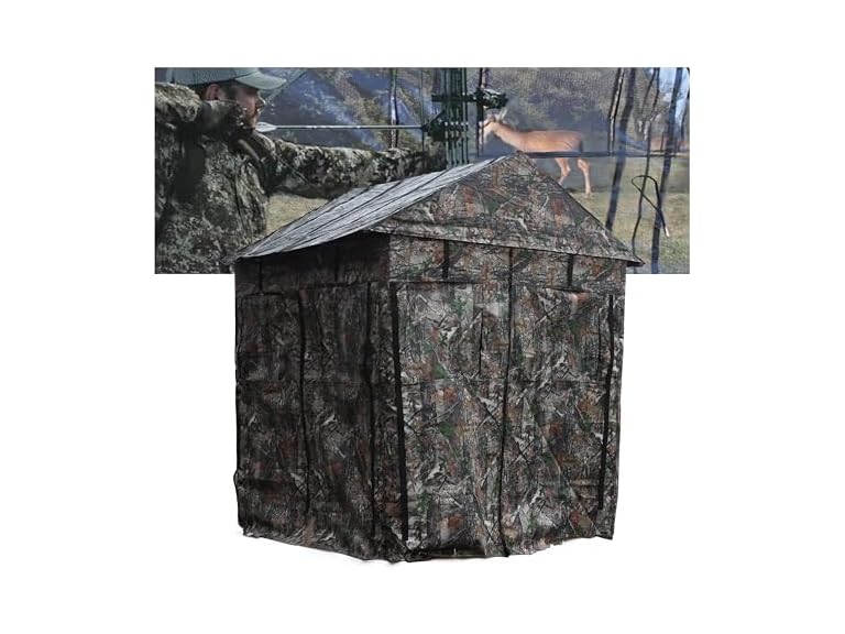 - Durable Construction: Crafted from 300D Oxford fabric and supported by a robust steel frame, this ground blind is built to withstand the elements and provide long-lasting performance.