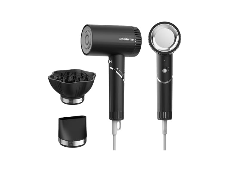 - Demiwise 110000 RPM High-Speed Hair Dryer for Curly Hair, 1400W Low Noise Iconic Dryer with Diffuser and Nozzle - Quick Drying, Negative Ion Technology, Ideal Gift