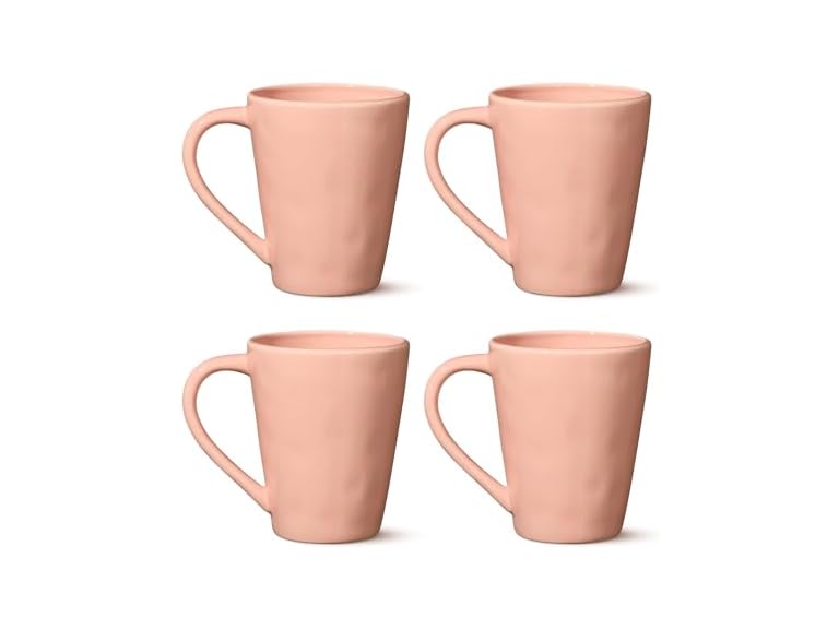 - Desert Rose 18 oz Stoneware Mugs – Set of 4 Modern Pink Coffee Mugs with Glossy Finish – Durable Microwave-Safe Cups for Tea, Cocoa, Lattes, and Everyday Hot Beverages