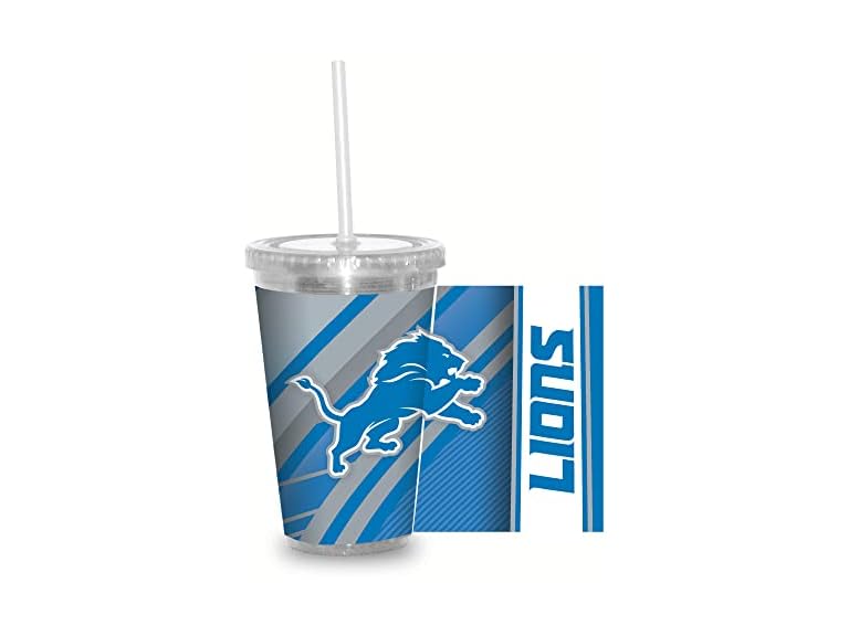 - (1) Rico Industries NFL Football Detroit Lions NFL Football Team 16oz Clear Tumbler W/Straw