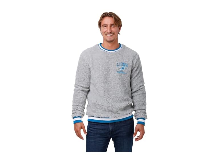 - Team-Colored Design: All-over, team-colored design with team logo and wordmark displays: This Men’s Sherpa Crew Neck Sweater is covered in the official team colors, so you can show off your team spirit with pride