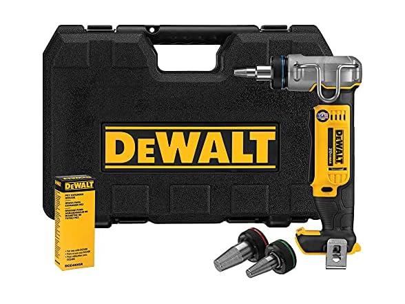Expand PEX Type-A tubing from 3/8-inch to 1-inch with the 20V MAX* Cordless 1inch PEX Expander, the fastest PEX Expander on the market.** It's proudly made in the USA with global materials. An automatic rotating head helps to ensure even expansion. The bright onboard LED work light and full trigger actuation make it an excellent tool in dimly lit, tight spaces. Carry this tool conveniently around the jobsite with a dual-sided hang hook and belt hook. Rubber overmold on the handle provides an ergonomic grip to keep you comfortable all day. This DEWALT pex expander tool uses DEWALT PEX Heads, and it is compatible with leading competitive PEX heads.- The pex tool expands 3/8-inch - 1-inch Pex Type-A tubing