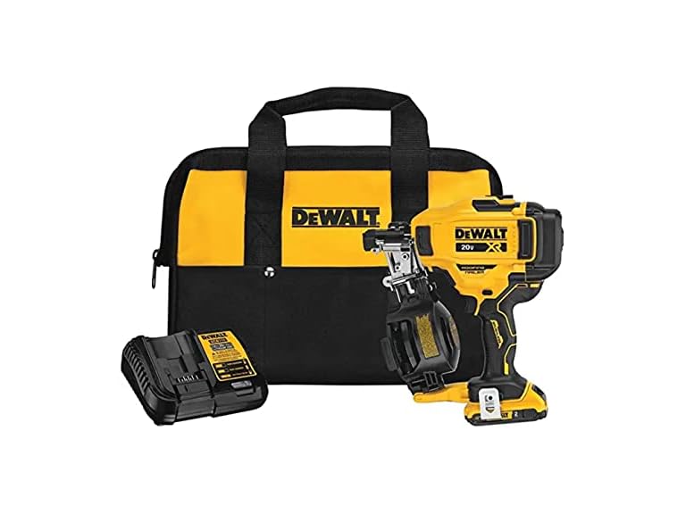 - (1) DeWALT DCN45RND1 20V 15 Degrees Lithium-Ion Cordless Coil Roofing Nailer Kit: Includes Nailer, (1) 2Ah Battery and Charger with Soft bag
