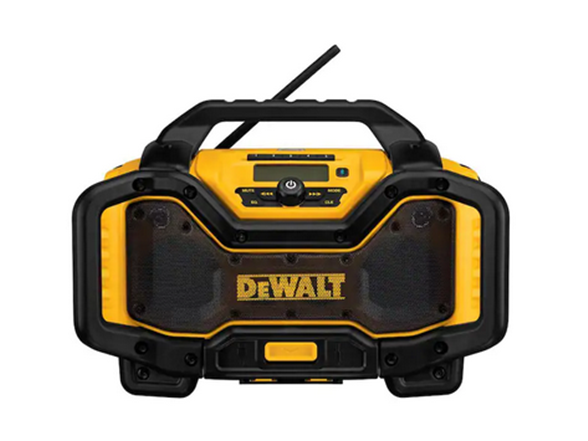 The DCR025 is designed to be the most versatile Jobsite Radio Charger on the market. The unit is able to run off and charge all DEWALT slide pack battery packs including 20-Volt and FLEXVOLT packs at 3 Amp when plugged into an AC outlet. The unit is designed to include woofers, tweeters and air ports to provide clear and rich sound at all volume levels. An oversized device storage box protects devices from worksite conditions and includes an Aux and 2.1 Amp USB charging port for convenient device charging. 2 AC Power outlets on the side of the unit allow you to plug in additional tools or chargers without occupying additional outlets on the wall. AVRCP (Audio Visual Remote Control Protocol) allows you to control your device from the radio interface so you can keep the device in a safe place and skip to the next song or hit replay on the radio interface.
