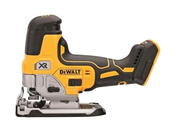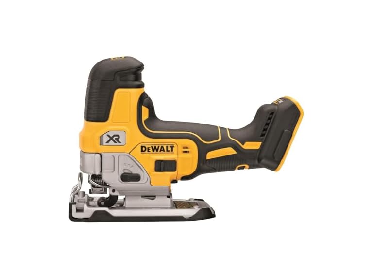 Our 20V MAX XR Cordless Jig Saw with Barrel Grip features an efficient motor for powerful performance and extreme runtime. Precisely control blade speed up to 3,200 spm with the variable speed trigger and dial, for professional results no matter what you're cutting. 4-position orbital action lets you adjust for optimal cutting of a variety of materials. A bright LED light illuminates dim work surfaces and makes it easy to follow cut lines. The updated all-metal, lever-action keyless blade clamp is designed for quick and easy blade changes of t-shank cordless jig saw blades. Also keyless, the shoe bevel is easy to adjust with detents at 0 degree, 15 degree, 30 degree, and a positive stop at 45 degree. A removable shoe cover helps protect materials from scratches, and an integrated dust blower helps remove dust and debris from your line of sight as you cut.