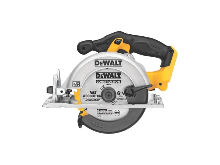 The DCS391B 20V MAX* 6-1/2-inch circular saw with a 6-1/2-inch carbide tipped blade operates on a powerful 5150 rpm motor with a 0 to 50-degree bevel capacity on a lightweight and durable magnesium shoe of the DEWALT 20V cordless circular saw.
