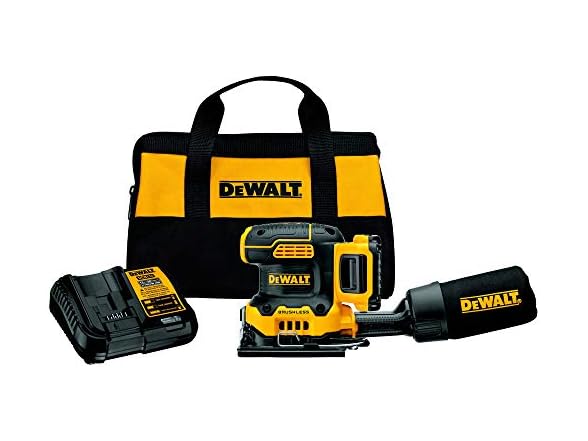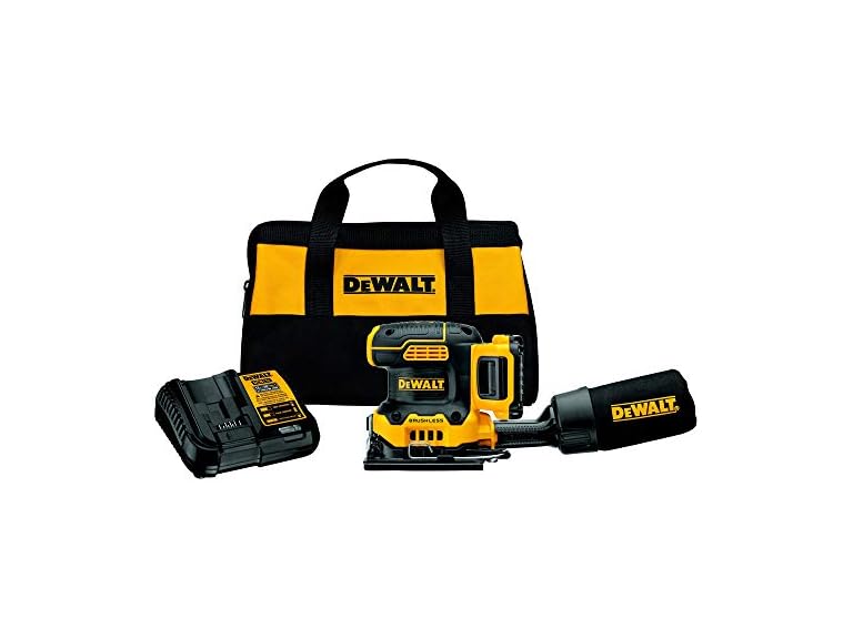 - (1) DEWALT DCW200D1 20V MAX XR Cordless 1/4 Sheet Variable Speed Sander Kit: (1) DCW200 20V MAX* XR Brushless 1/4 Sheet Variable Speed Sander; (1) Dust Bag; (1) Hole Punch; (1) Short Dust Chute; (1) DCB112 12V MAX*/20V MAX* Lithium Ion Battery Charger; (1) DCB203 20V MAX* 2.0Ah Lithium Ion Battery; (1) Kit Bag