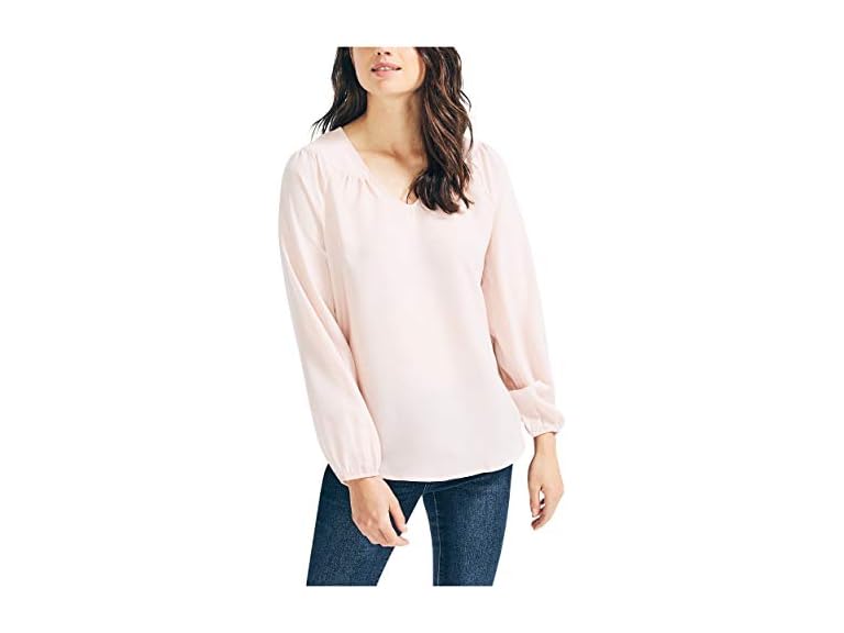 - (1) Nautica Womens Women's Long Sleeve V-Neck Woven Shirt Blouse, Sepia Rose, Large US