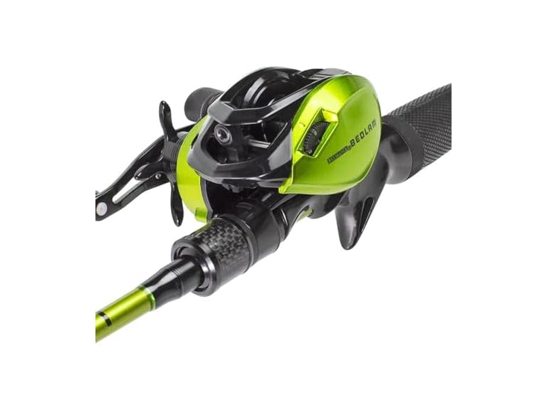 - PREMIUM Baitcaster Rod and Reel CONSTRUCTION offering more leverage and casting distance. Featuring a composite, carbon and glass fiber construction while the rod offers the angler High Medium Power for great sensitivity. Comes with a non-slip, split grip handle, and low-friction ceramic guides for smooth operation.