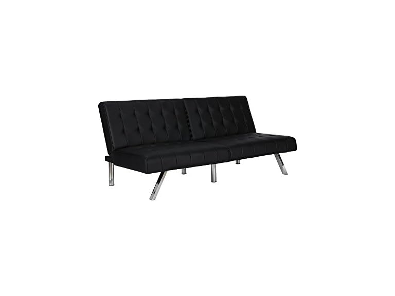 - (1) DHP Emily 71 Inch Futon Sofa Bed in Faux Leather, Armless Upholstered Couch Sleeper with Tufted Back and Seat, Mid-Century Modern, Black