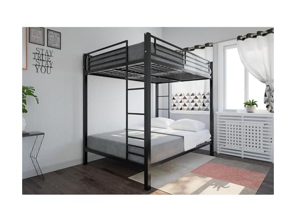- (1) DHP Full Over Full Metal Bunk Bed, Black, Space-Saving Kids Furniture, Sturdy Frame, Guard Rails, Integrated Ladder