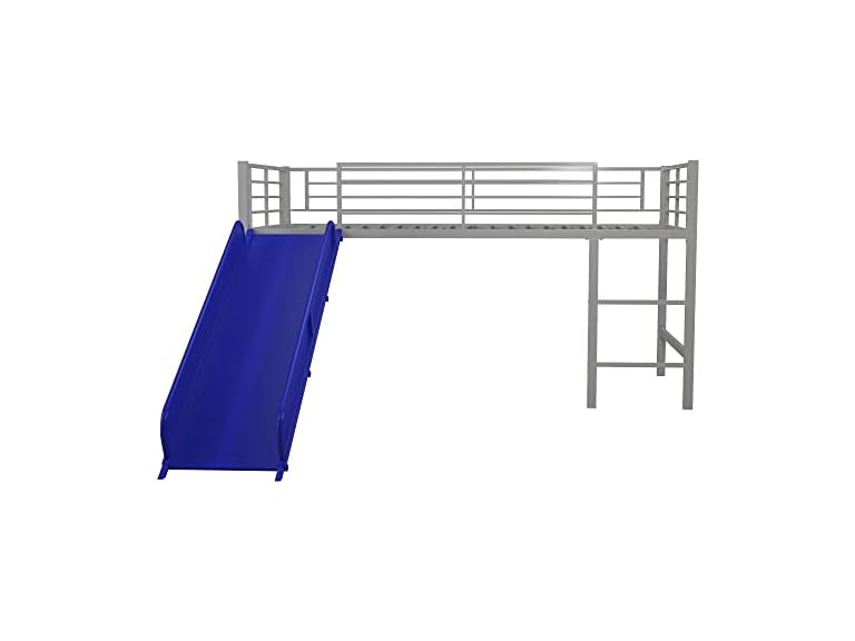 - (1) DHP Junior Twin Metal Loft Bed with Slide, Multifunctional Design, Silver with Blue Slide