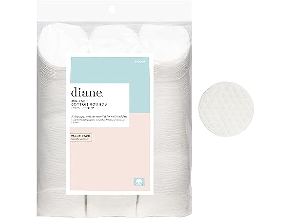 - Diane Multi-Layer 2.4” Cotton Rounds, 100% Pure Cotton, Ideal for Makeup Removal, Nail Polish Touch-Ups, Skincare, and Everyday Household Use, 300 Count